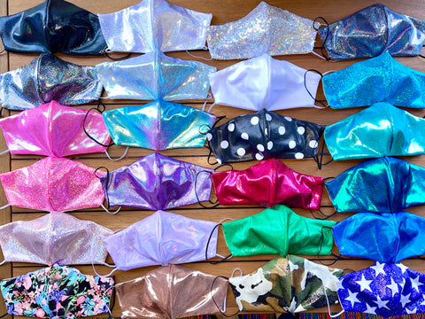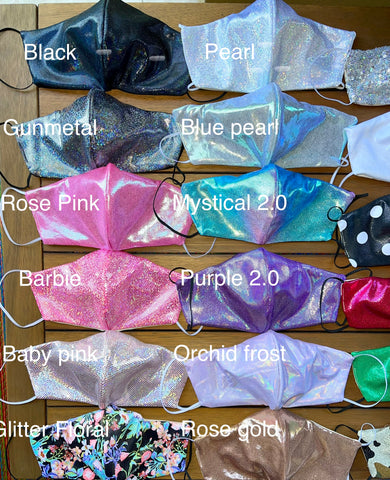 Iridescent Sparkly Cloth Face Masks 3 Pack - SHIPS FAST! USA made Fitted 3 layer Glitter Cloth Face Masks